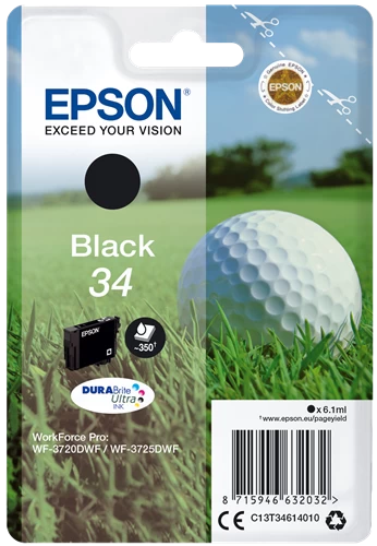 Beste Qualität zum besten Preis – Original Epson 34 / C13T34614010 Tinte Schwarz bis zu 350 Seiten 6ml – Original Epson WorkForce Pro Tinte – Schwarz – Jetzt günstig kaufen!