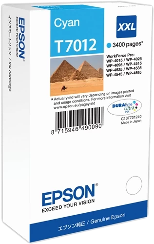 Beste Qualität zum besten Preis – Original Epson T-7012XXL / C13T70124010 Tinte Cyan bis zu 3400 Seiten 34ml – Original Epson WorkForce Pro Tinte – Cyan – Jetzt günstig kaufen!