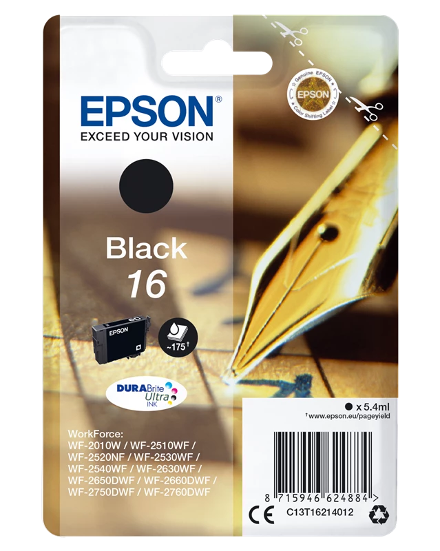 €18.50Beste Qualität zum besten Preis – Original Epson C13T16214012 / 16 Tinte Schwarz bis zu 175 Seiten – Original Epson WorkForce Pro Tinte – Schwarz – Jetzt günstig kaufen!
