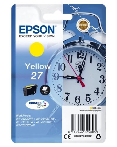 €15.22Beste Qualität zum besten Preis – Original Epson C13T27044012 / 27 Tinte Gelb bis zu 300 Seiten – Original Epson WorkForce Tinte – Gelb – Jetzt günstig kaufen!