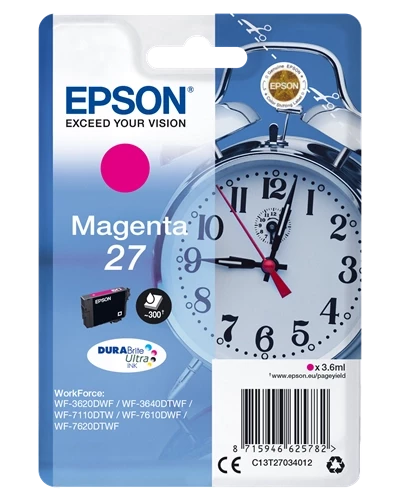 €15.91Beste Qualität zum besten Preis – Original Epson C13T27034012 / 27 Tinte Magenta bis zu 300 Seiten – Original Epson WorkForce Tinte – Magenta – Jetzt günstig kaufen!